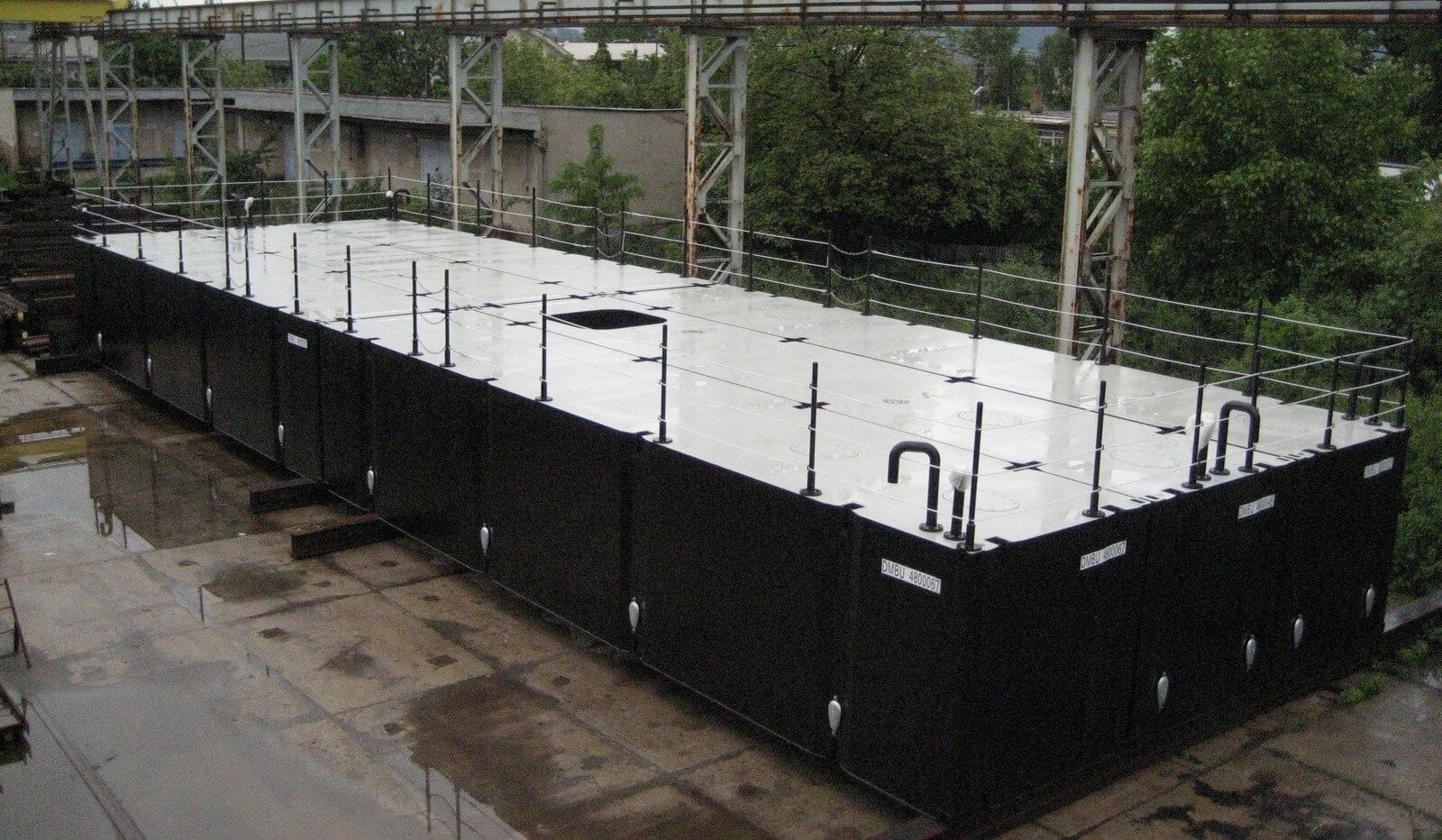 суда могут безопасно закрепляться, изготовленный из стальных модульных понтонов контейнерного типа.